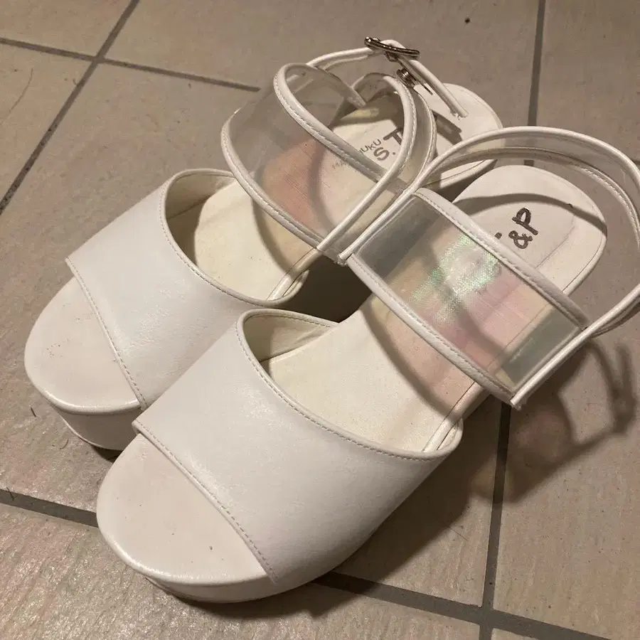 새상품급 화이트 클리어 스트랩 웨지 샌들