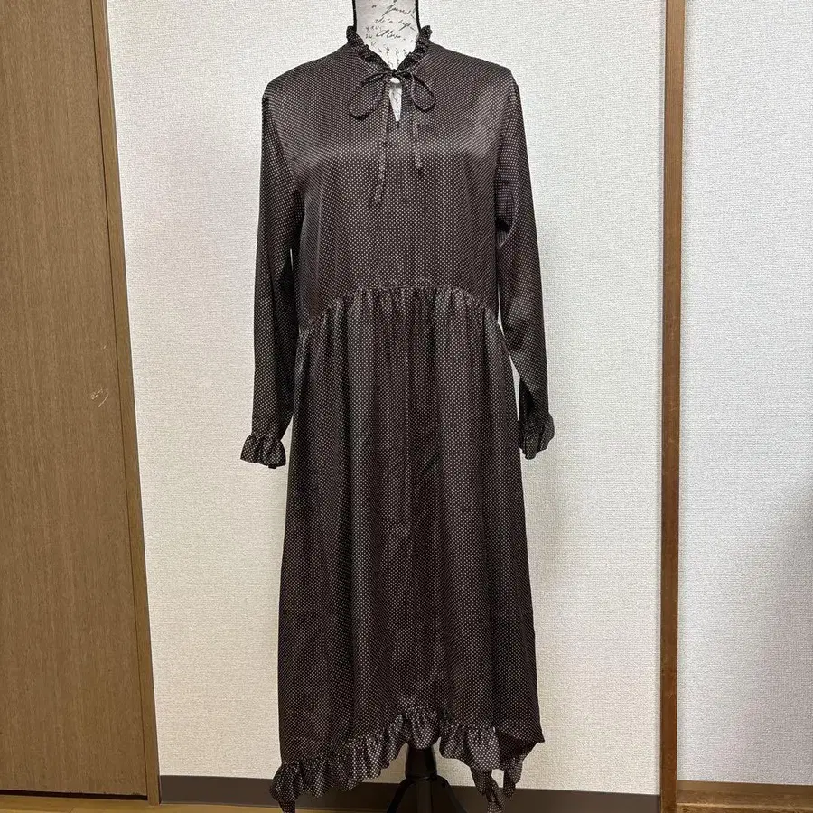 [ 새상품급 ] 르쉘 블루 맥시 원피스 도트 무늬 브라운