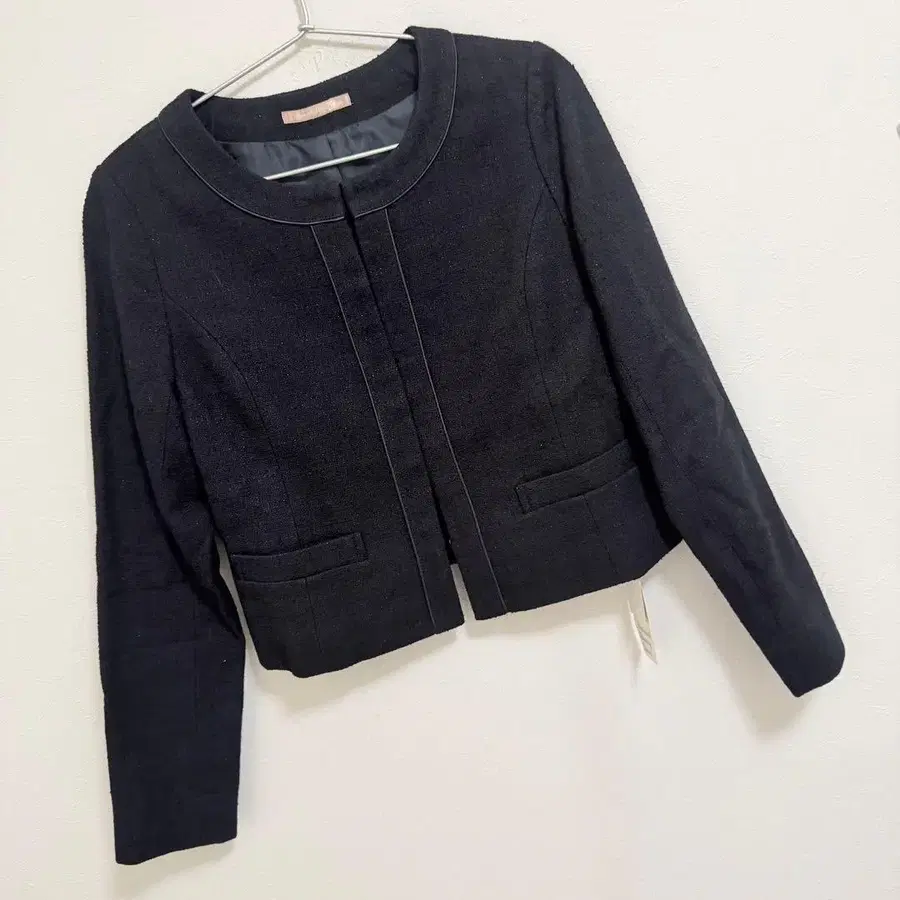 내추럴 뷰티 베이직 라메 루프 트위드 노카라 블루종 25