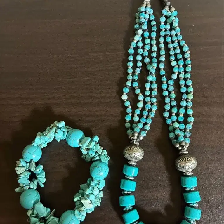 [ 묶음 판매 ] 터콰이즈 여성용 목걸이 팔찌 임팩트