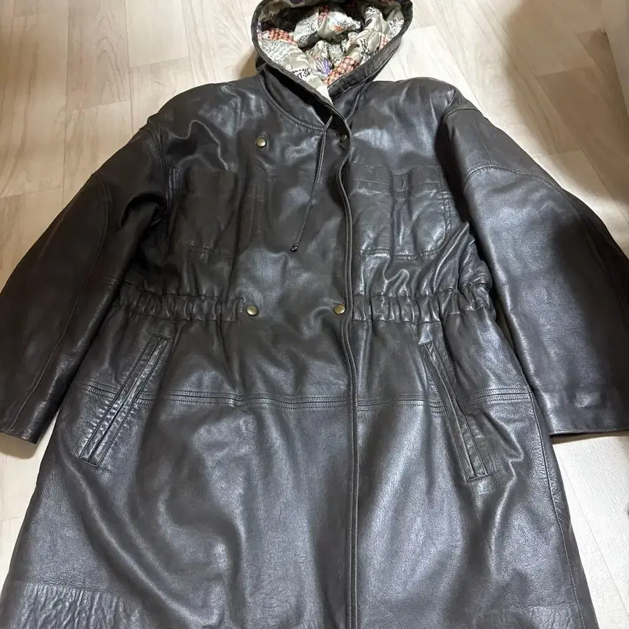 월드 BLANCE 다크 브라운 양가죽 모즈 코트 후드 부착 가죽