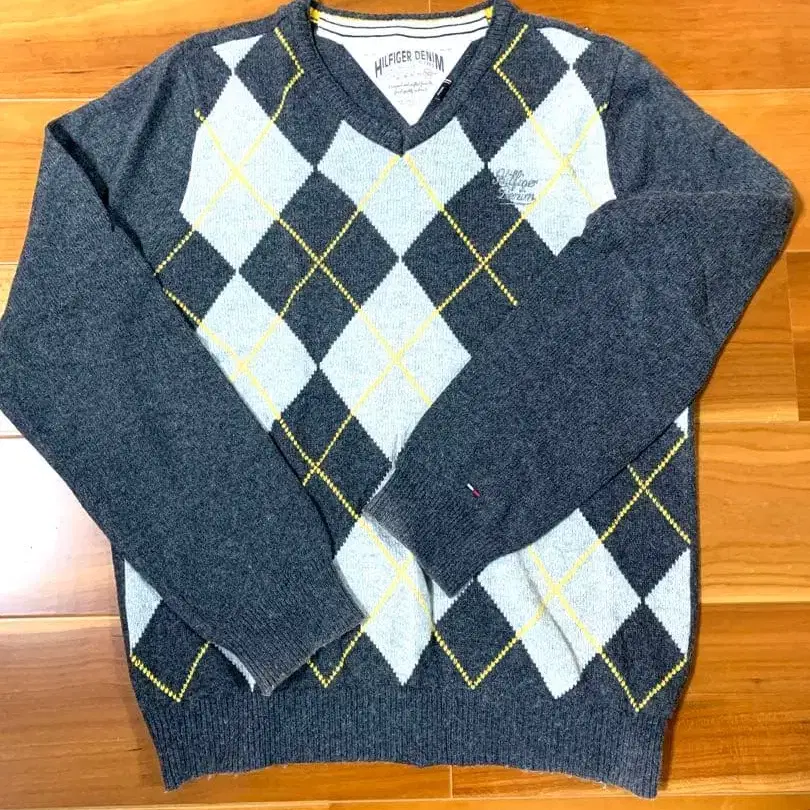 힐피거 데님 남성용 스웨터 M 사이즈 그레이 체크 옐로우 컬러 타미힐피거