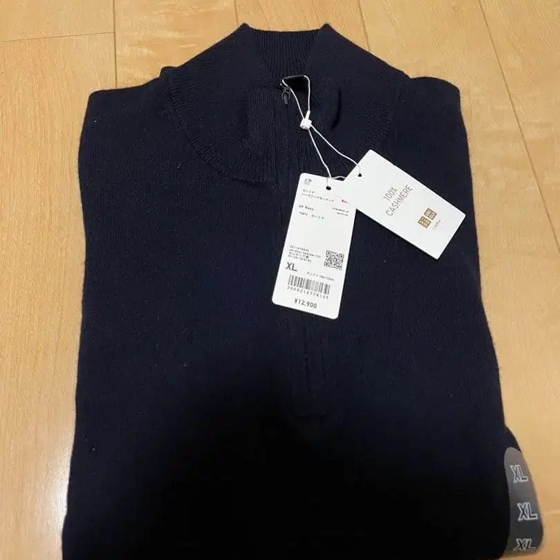 미사용 새상품 2025년 유니클로 캐시미어 하프 지퍼 스웨터 XL 네이비