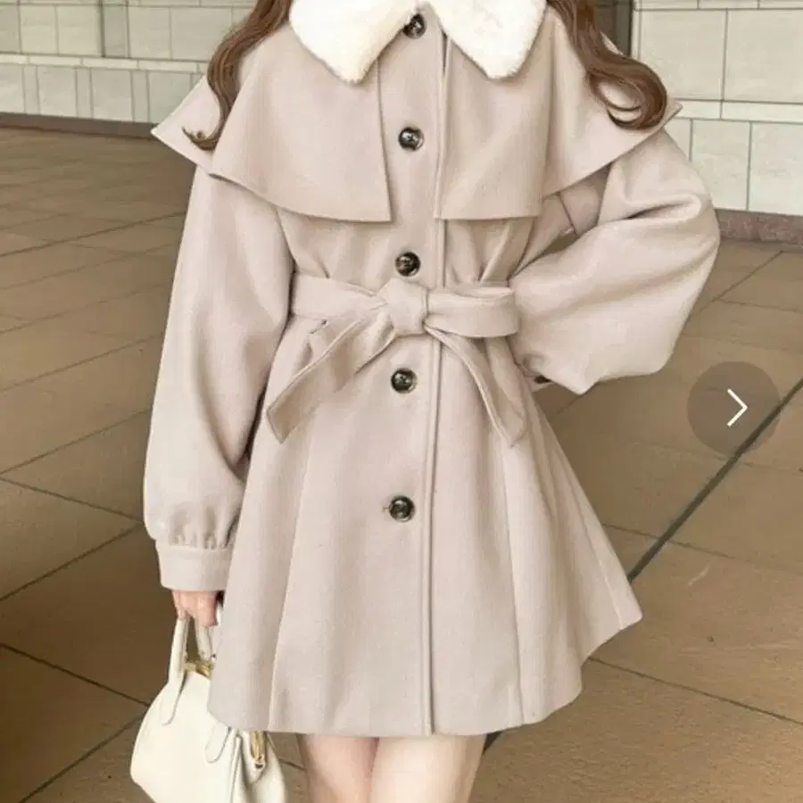 아프레 주르 핑크 베이지 퍼 케이프 코트 X-LARGE