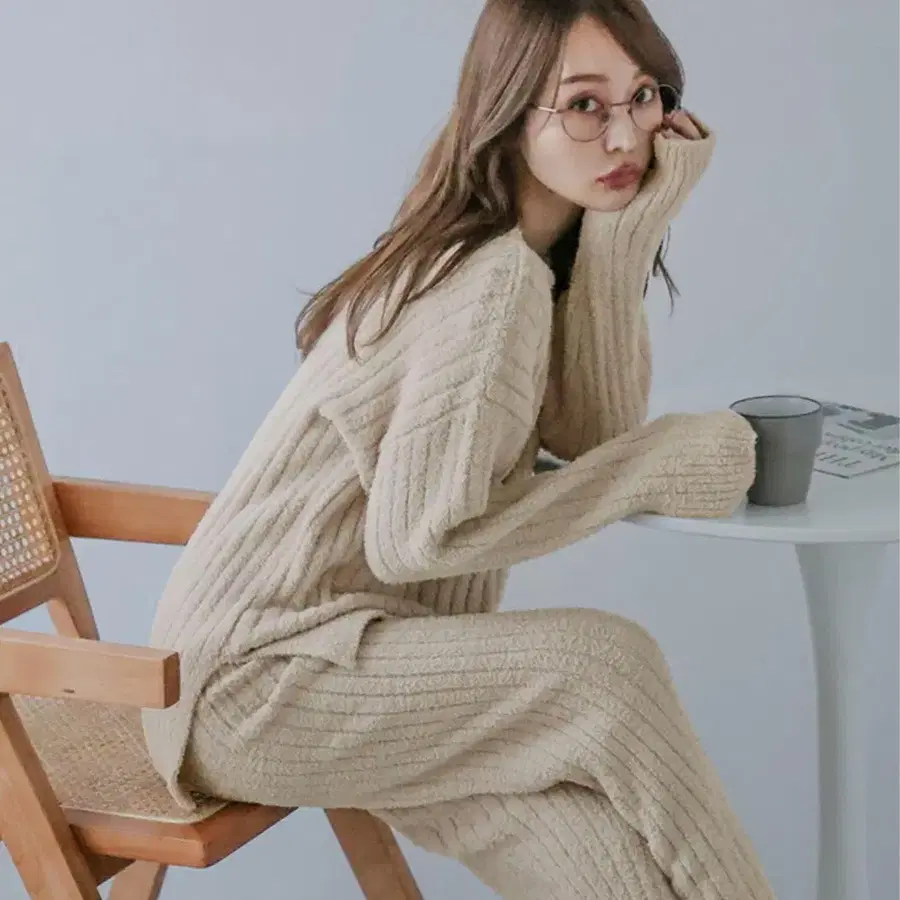 [ 새상품급 ] 리브 니트 상의 하의 세트 파자마 룸웨어 여성용