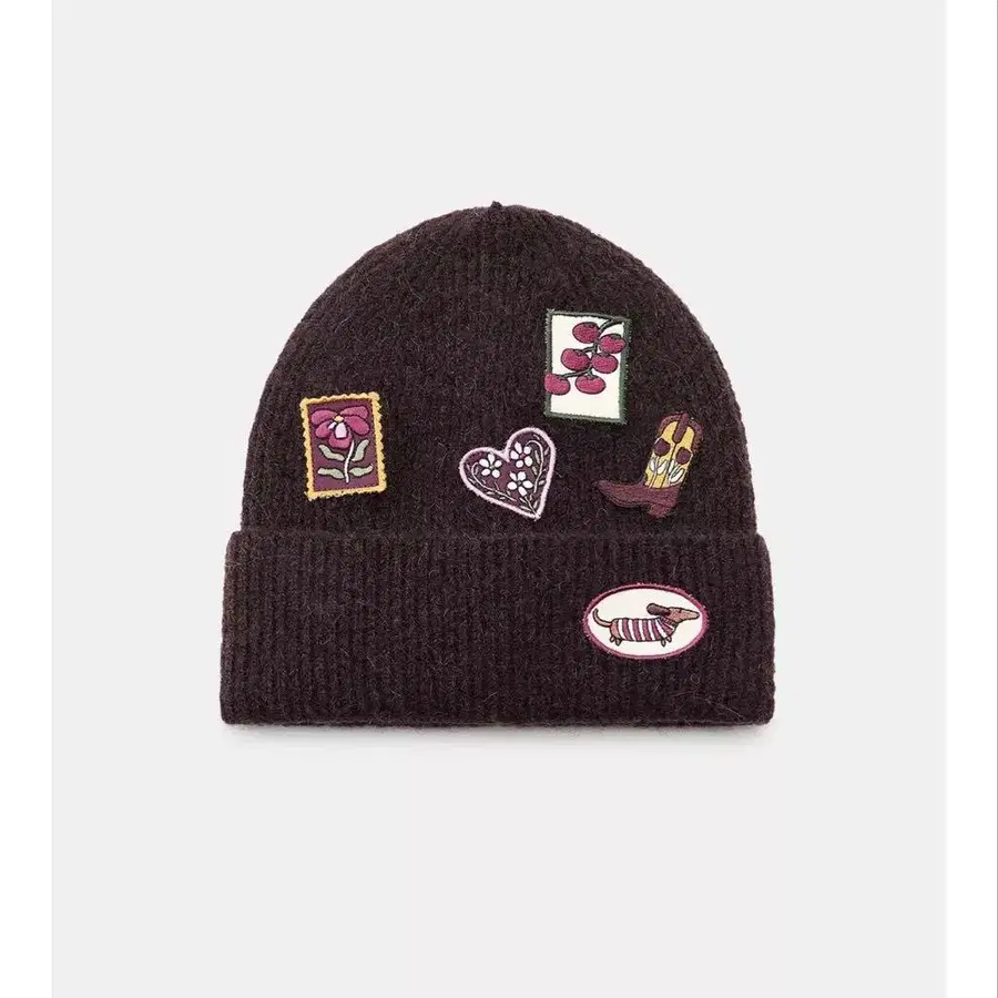 [온라인 완판템] ZARA 다크 브라운 자수 패치 니트 비니 모자