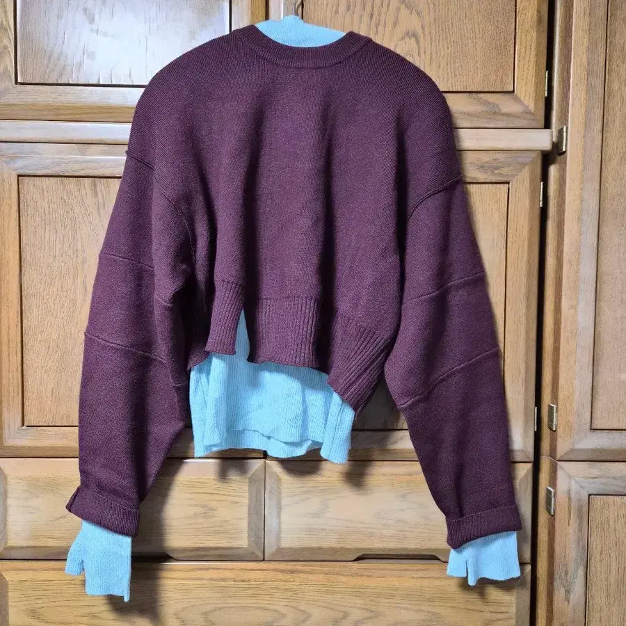 PLUS 버건디 불규칙 헤임 레이어드 니트 세트