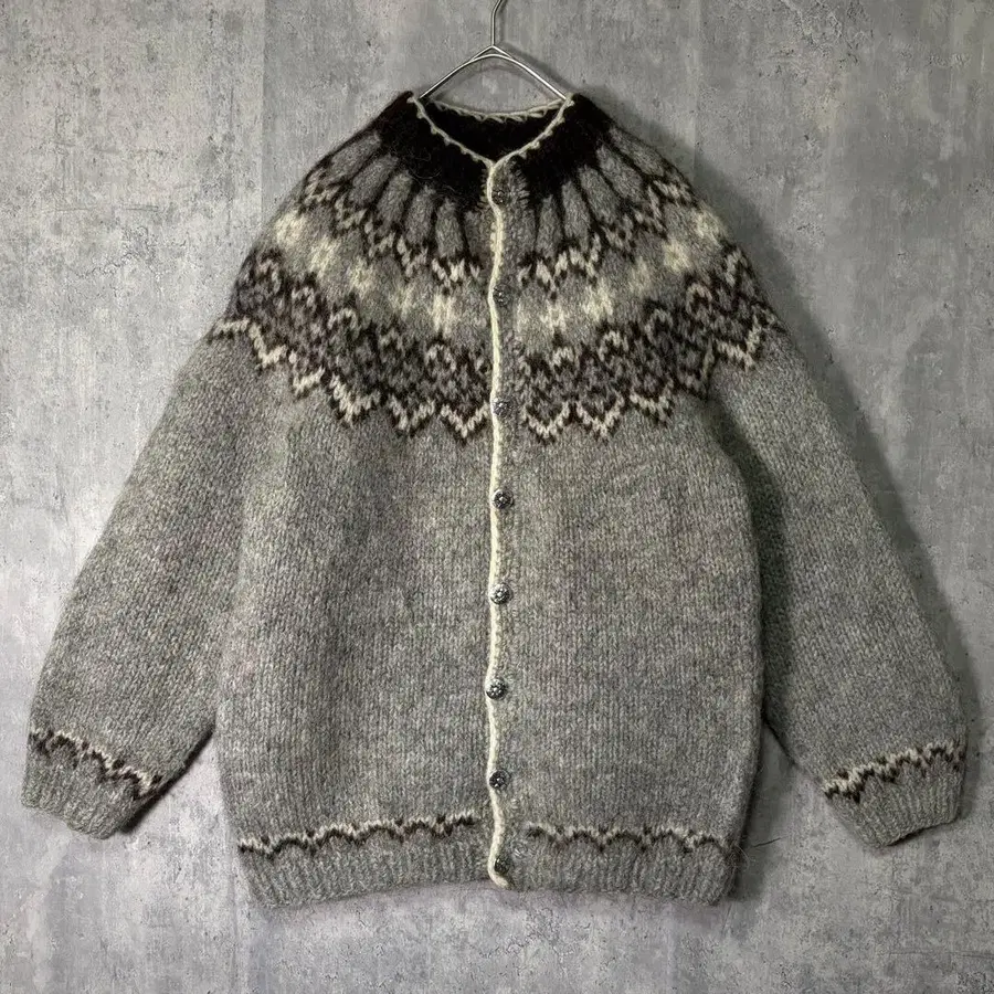두툼한 니트 에콰도르 스타일 은색 버튼 네이티브 무늬 그레이