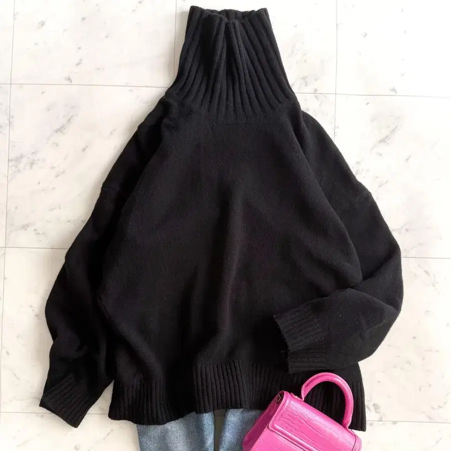 고품질 유나이티드 애로우즈 울 캐시미어 하이넥 니트 블랙