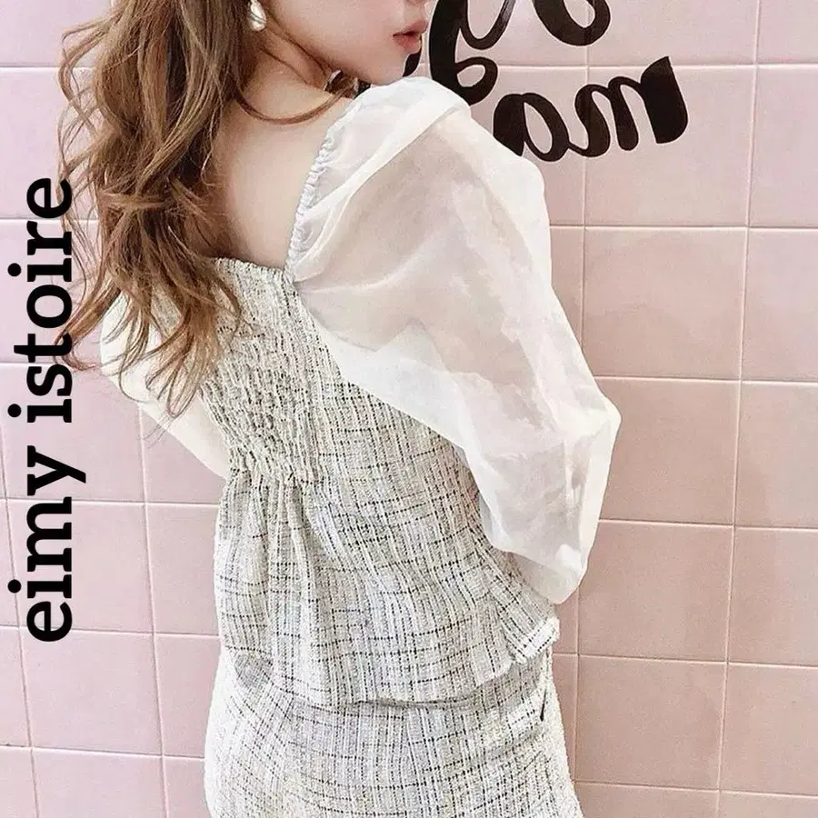eimyistoire EIMYISTOIRE 도킹 뷔스티에 퍼프 슬리브 시스루 시어 셔츠 블라우스 상의 트위드 완판템 도킹 셔츠 블라우스 상의