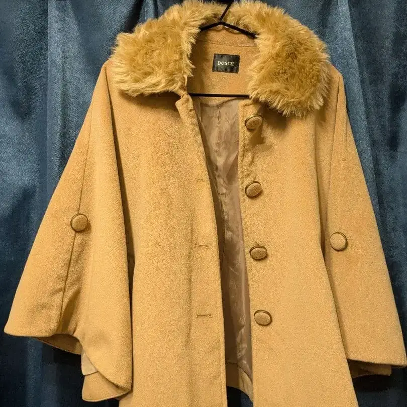 퍼가 달린 베이지 케이프 코트