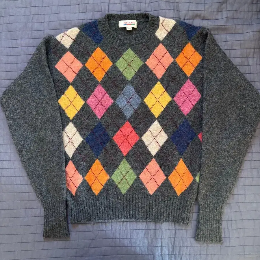 PORTLAND 아가일 니트 스웨터 구제 의류 다이아