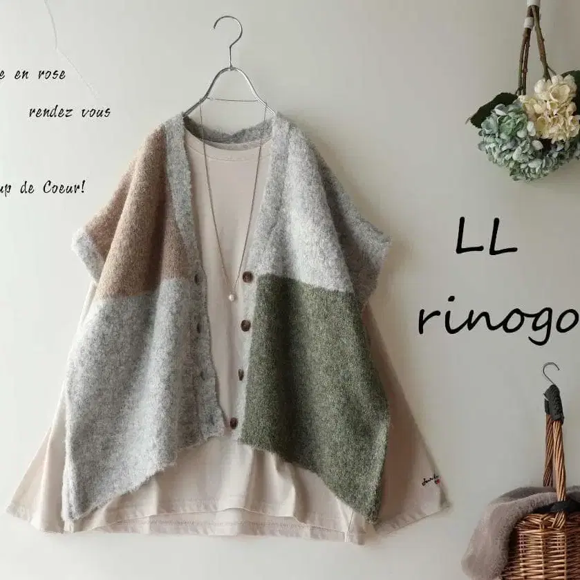 새상품 할인 LL 그레이 카키 계열 배색 니트 베스트 가디건 빅 사이즈
