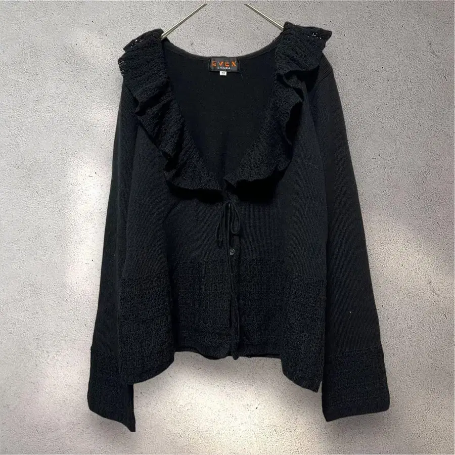 에베크스바이크리치아 F 가디건 니트 프릴 블랙 울