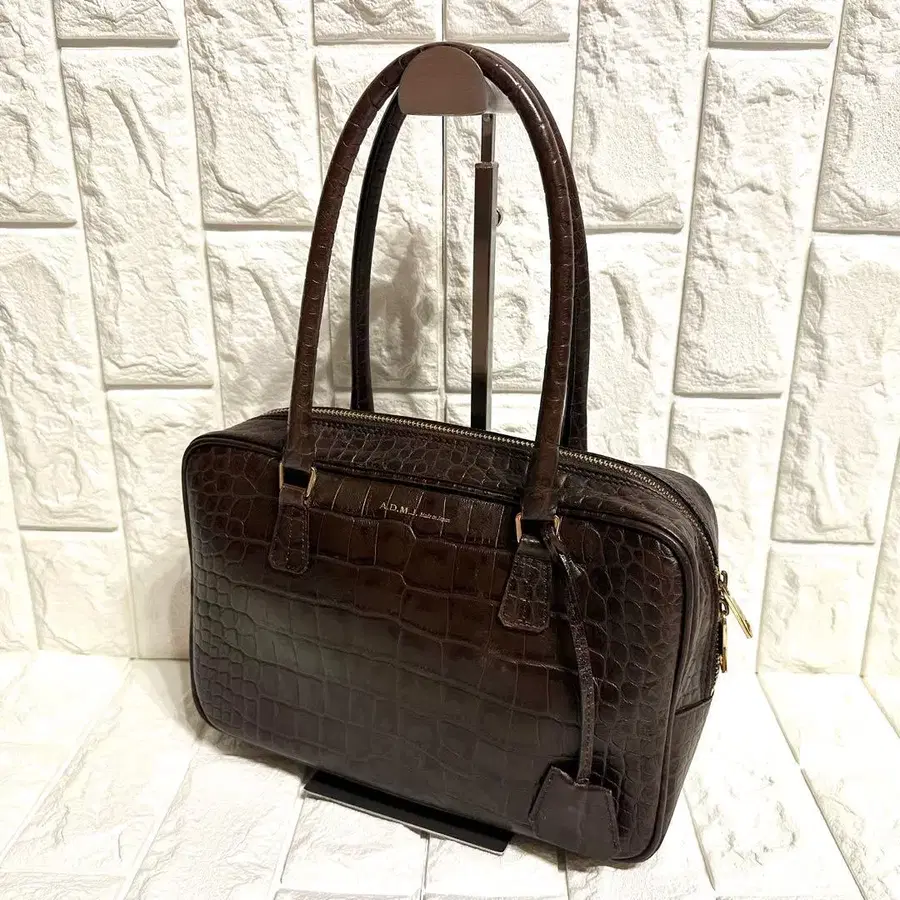 새상품급 ADMJ 악세소와 드 마드모아젤 악어 엠보싱 핸드백 브라운