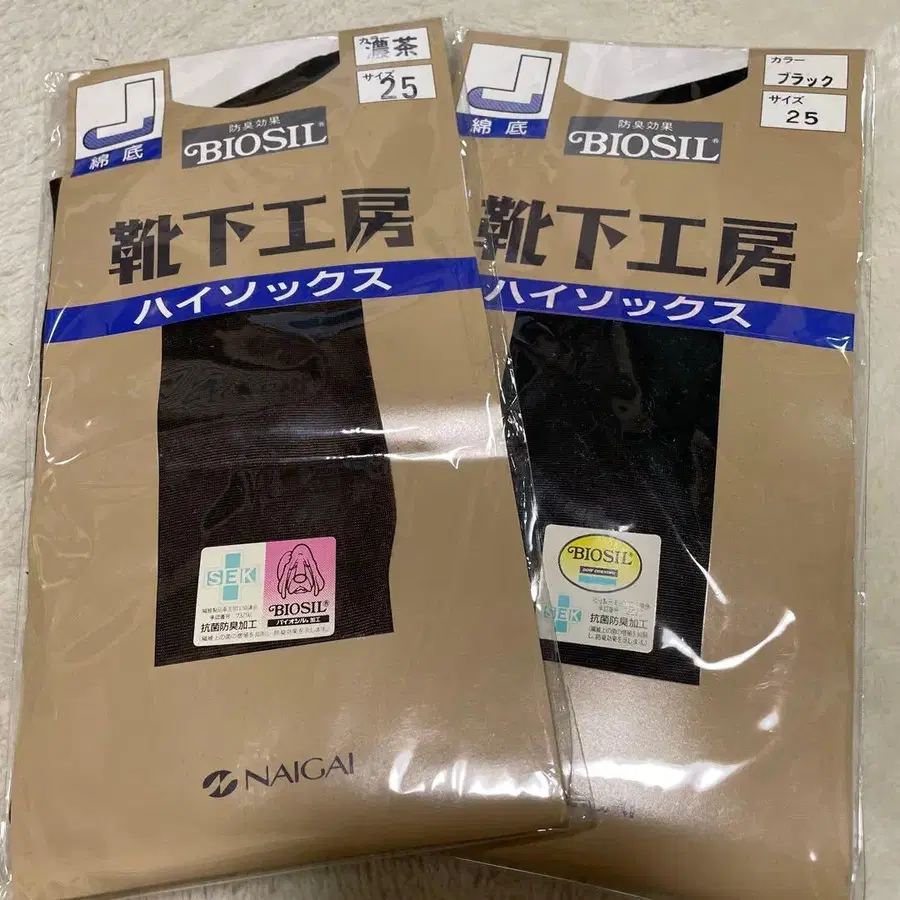 나이가이 나일론 하이삭스 양말 공방 블랙&다크 브라운 25cm 2족 세트