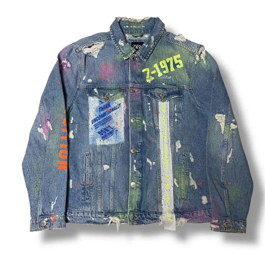 ZARA BTS 윤기 착용 데미지 컬러풀 페인트 데님 자켓 XL