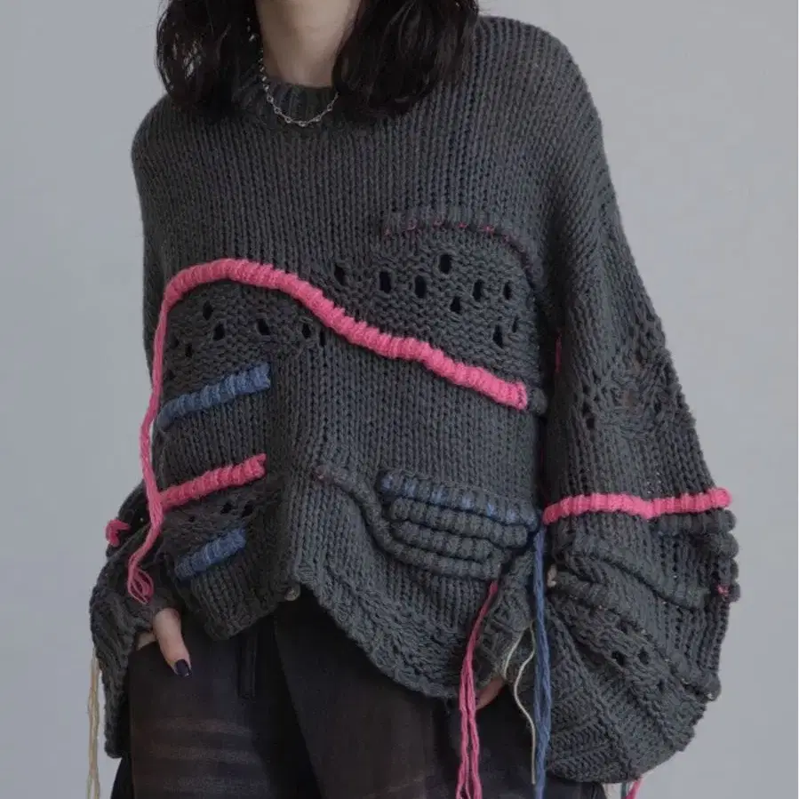 VACANCY 랜덤 배색 핸드 스티치 오버 니트