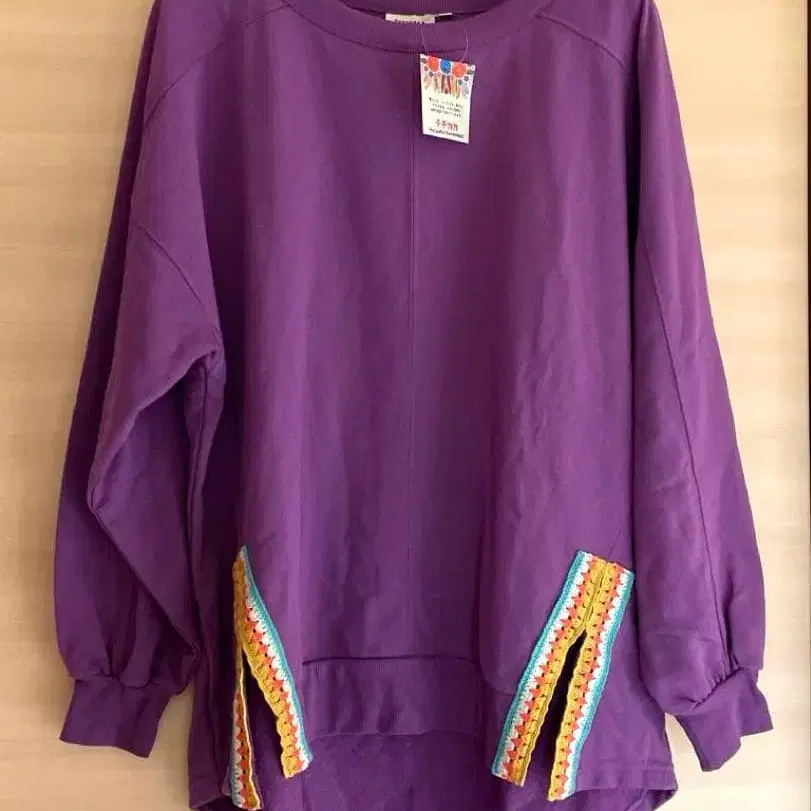 티티카카 미사용 새상품 슬릿 크로셰 풀오버 퍼플