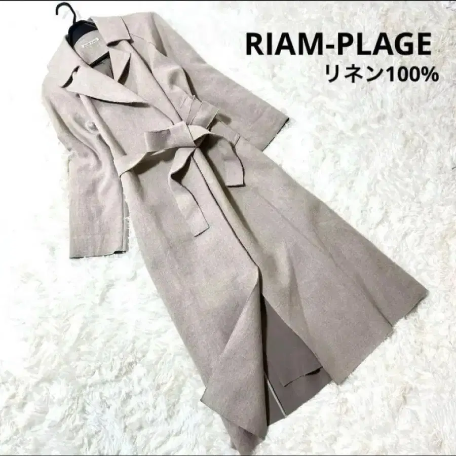 RIAM-PLAGE 린넨 100% 롱 코트 베이지 벨트 포함