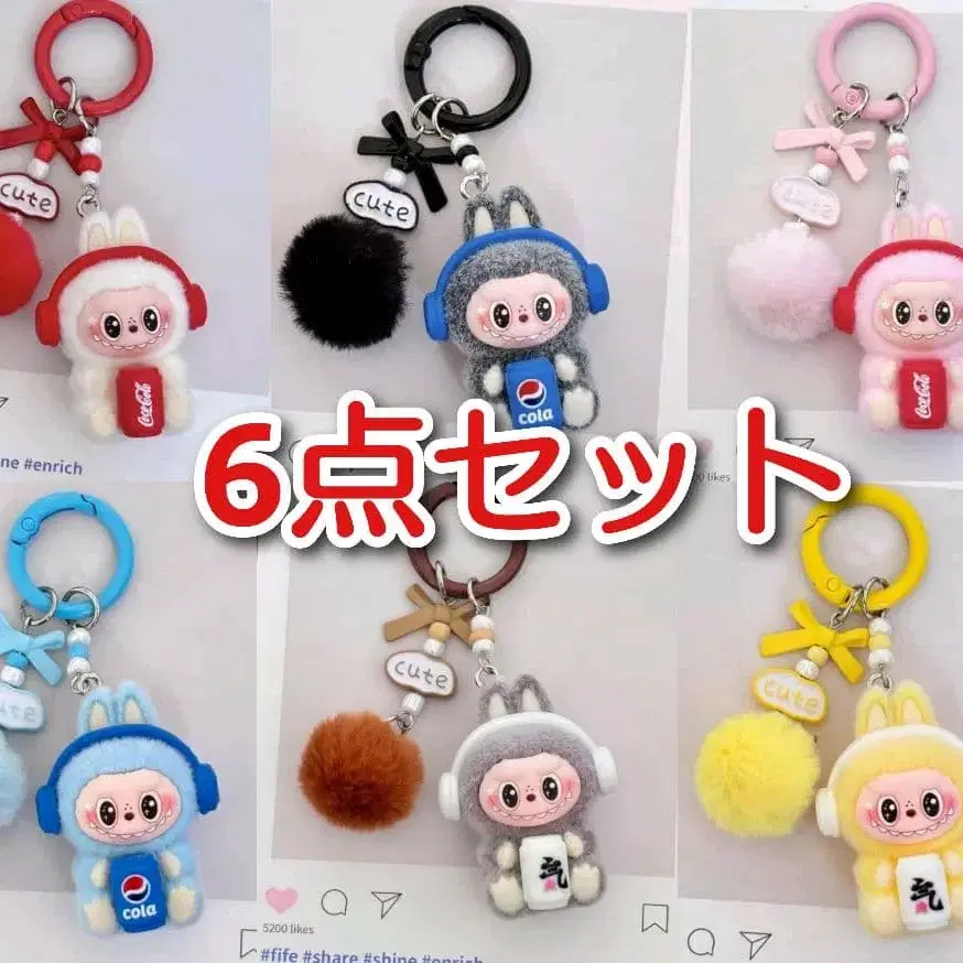 러브브 봉제 인형 키링 6세트 콜라 폼폼 포함