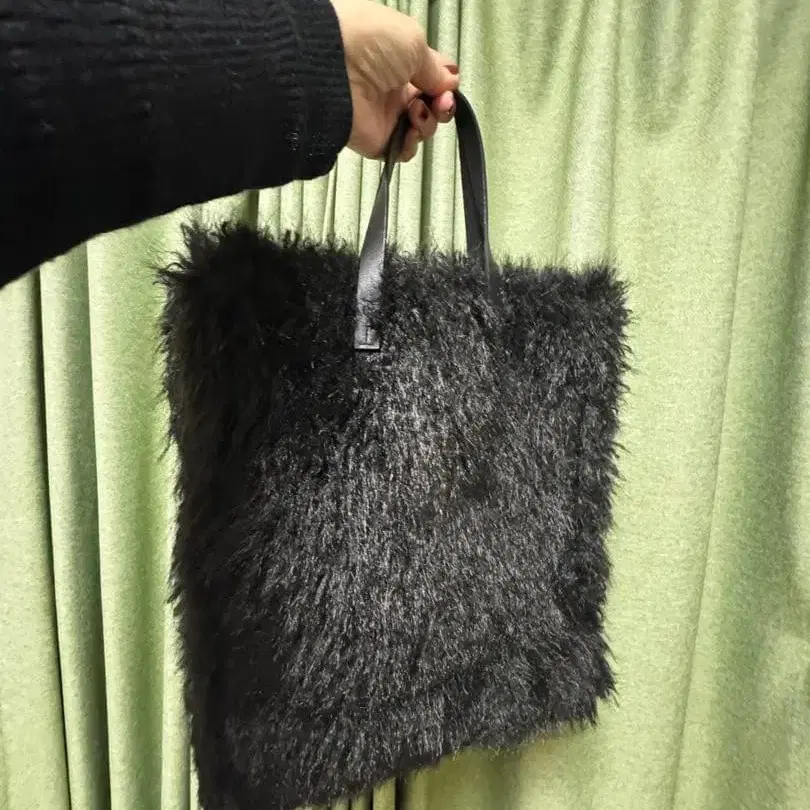 퍼 소재 블랙 토트백