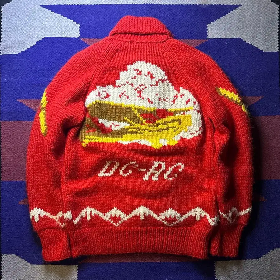 60s 카우친 니트 전투기 빨간색 C&C 지퍼
