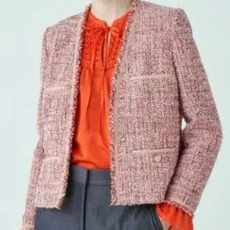 리본 같은 라이트 핑크 색상의 디자인사가 화려함과 입체감을 더한, 이탈리아 텍스타일 제조사의 오리지널 팬시 트위드 소재를 사용한 시리즈입니다. 세로실에 4종류, 가로실에 3종류의 실을 사용하여 표현된 절묘한 믹스감으로, 엘레강트함과 귀여움, 고급스러움을 융합한 듯한 분위기를 자아내는 수입 제품 특유의 소재감입니다. V넥 자켓은 트위드 색감에 맞춘 별주 색상의 블레이드와 프린지가 포인트입니다. 화려함을 살린 깔끔한 코디는 물론, 편안하게 걸치는 것도 추천합니다. 온오프를 불문하고 다양한 장면에서 활약해 줄, 코디의 주인공이 되는 아이템입니다.