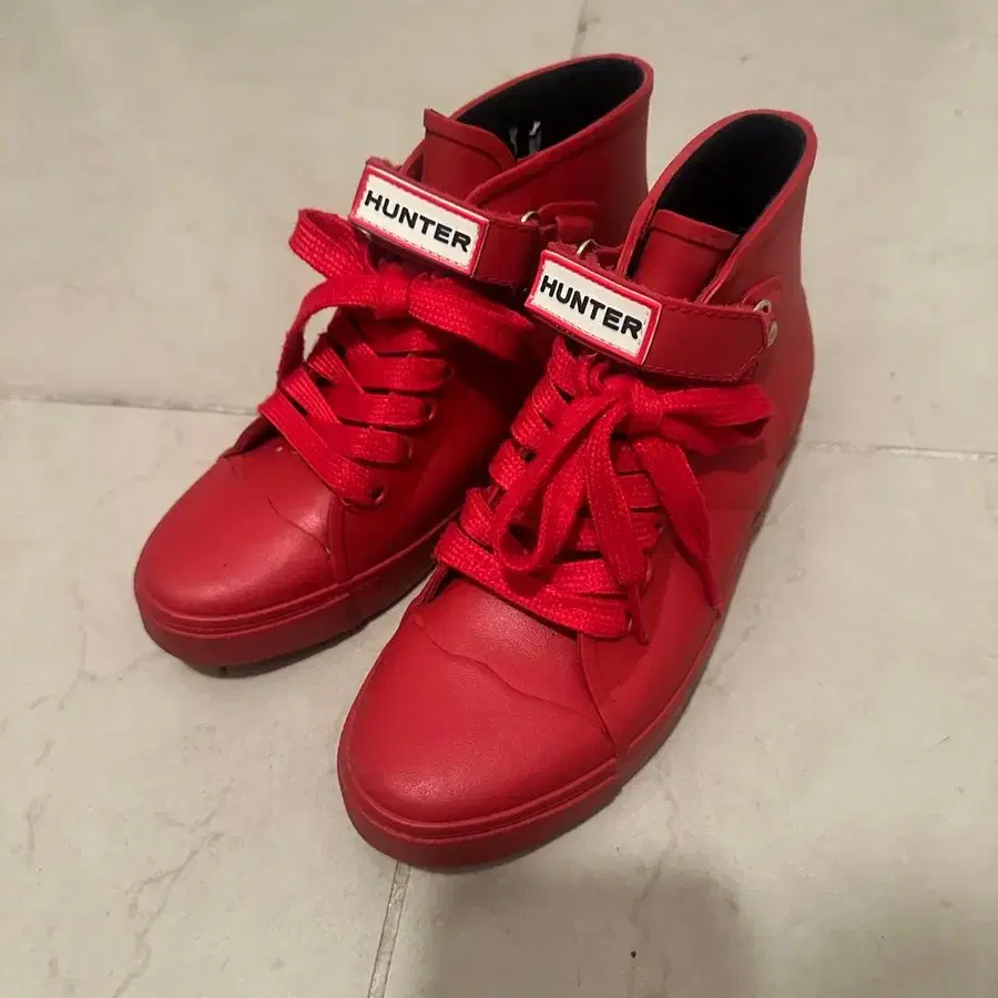 HUNTER 레인 슈즈 하이컷 레드 UK4