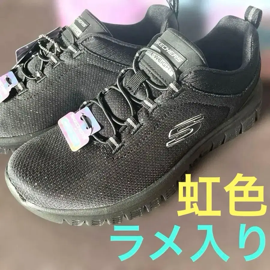 스케쳐스 레인보우 컬러에 라메가 빛나는 블랙 스니커즈