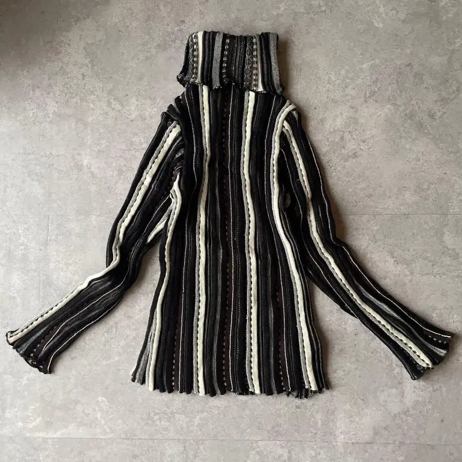 빈티지 터틀넥 상의 입체 스트라이프 그런지 Y2K 블랙