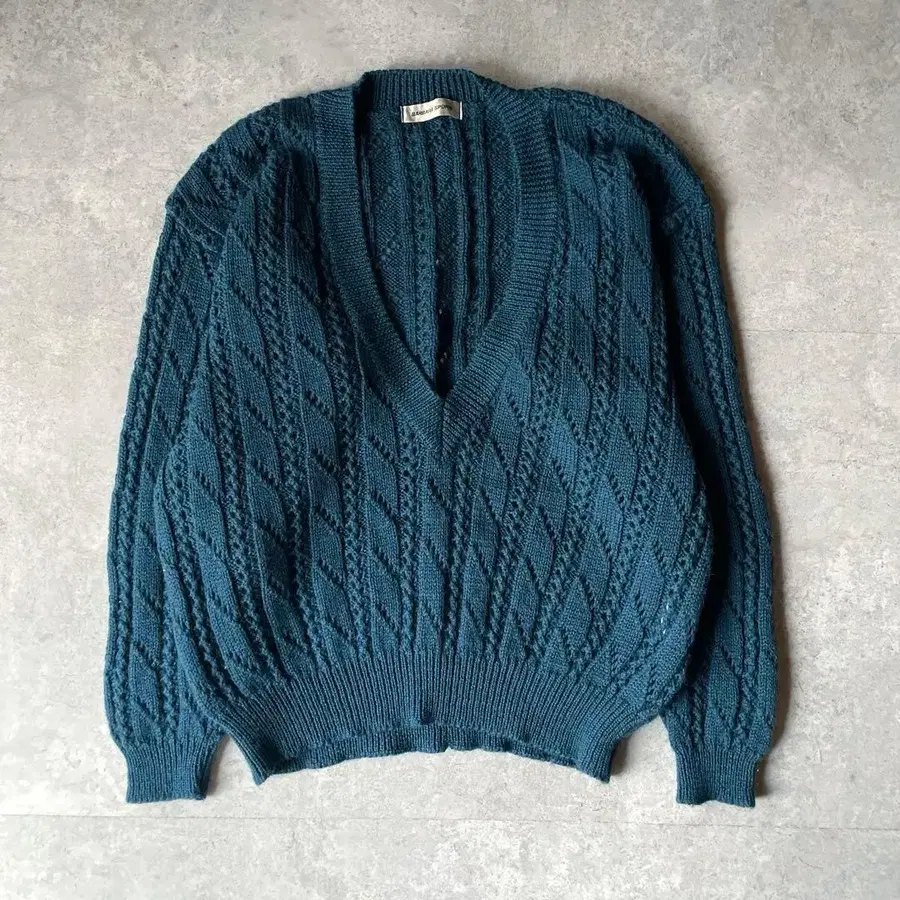니트 스웨터 울 니트 V넥 케이블 짜임 청록색 짙은 녹색 아카이브 모드 y2k 페어리 그런지 fairygrunge mcbling 맥브링 아카이브 archive 밀리터리 사이버 테크 군용 로자리오 00s 90s 80s 70s 00년대 90년대 80년대 70년대 화려한 펑크 블리치 데미지 가공 모드 군용 2000년대 우라하라 vintage 빈티지 ohnlawrencesullivan 사리반 yproject Midorikawa 찰스