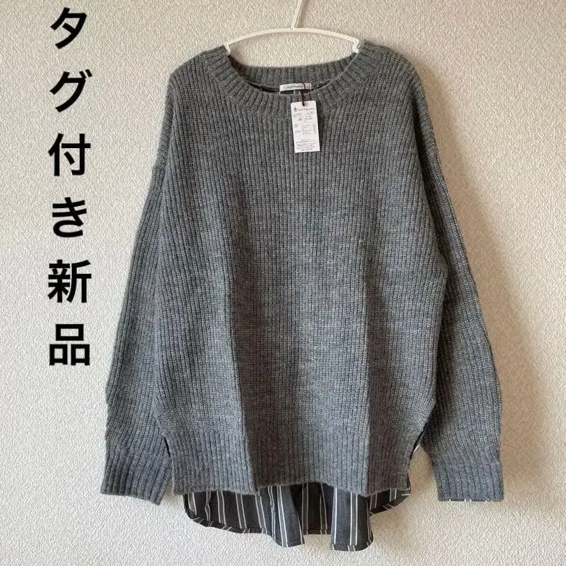 새상품 Hush Puppies (허시파피) 니트 x 면 혼방 도킹 상의