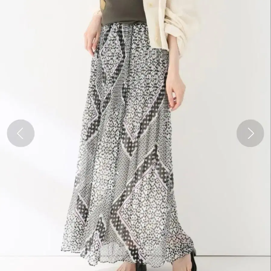 미사용 새상품 Spick & Span 스카프 프린트 페이드 플리츠 스커트