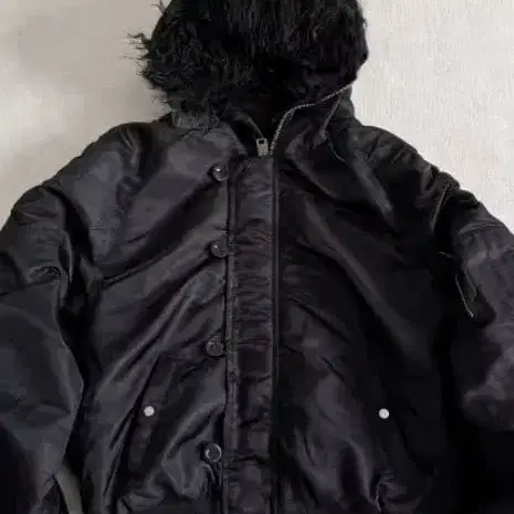 블랙 MA-1 자켓 (퍼 달린 후드)
