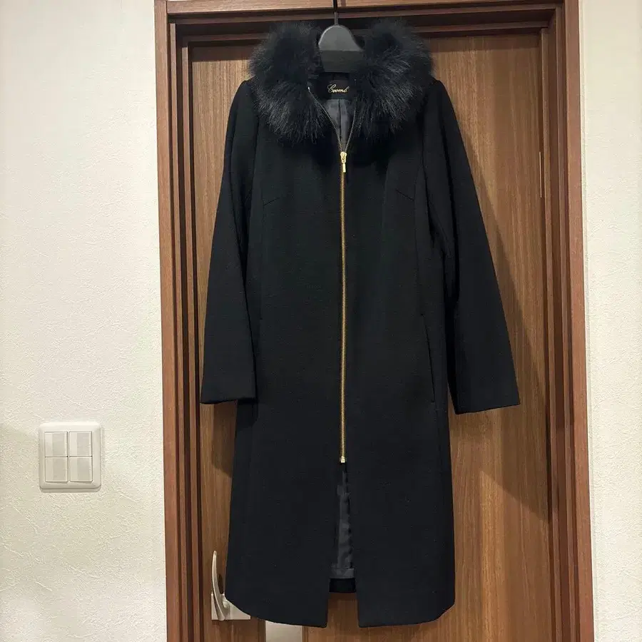 Coomb 퍼 포함 롱 코트 블랙