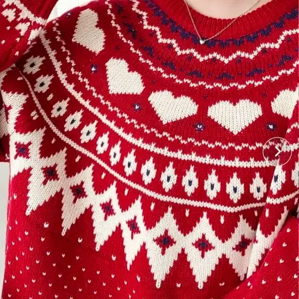 하트 무늬 빨간색 니트 스웨터 M 사이즈 moment+/모먼트플러스