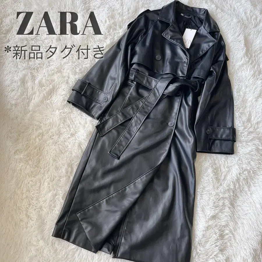ZARA 자라 페이크 레더 트렌치코트 롱 코트 레더 코트 PU 인조 가죽 에코 레더 새상품 택 포함 미사용 블랙 블랙 더블 버튼 벨트 포함 허리 마크 롱 기장 모던 깔끔 캐주얼 성인 여성 한국 패션 가을/겨울 아우터 S