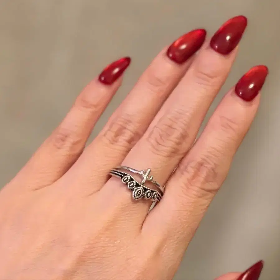 아쉬페프랑스 실버 컬러 스태킹 반지 크로스 모티브 13호