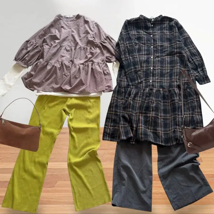 다양한 스타일의 5세트 체크 셔츠 등, 캐주얼하고 멋스러운 디자인으로 준비했습니다! 사이즈 표기와 관계없이 ML 사이즈의 사이즈감으로 준비되어 있습니다! 허리밴딩이거나, 어느 사이즈든 괜찮을 것 같은 느낌이라 ML 사이즈 분들께 추천합니다. 가을/겨울 레이어드를 즐기면서, 지금 바로 입으실 수 있습니다! 그렇게 많이 착용감 있는 제품은 없지만, 중고 제품임을 이해하신 후 구매 부탁드립니다! 모두 가지고 계신 옷과 코디하기 쉬운 제품들일 것입니다! - 스타일: 셋업 - 아이템 수: 5개 왼쪽부터 헬름 시어 아론 T M부터 L 허드슨 허니 브라운 플레어 튜닉 M 알마 디자인 리브 팬츠 L 그레이 턱 팬츠 차콜 클로젯 L ehka sopo 체크 튜닉 원피스 F 잡화는 참고 상품이므로, 착오 없으시길 바랍니다! 방문해 주셔서 감사합니다.