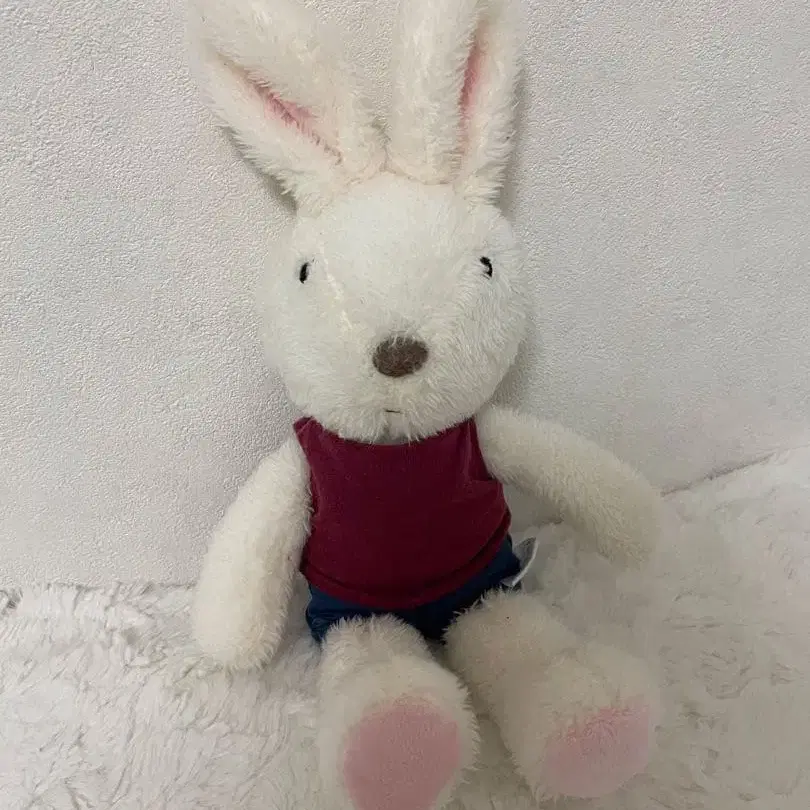 토끼 봉제 인형 빨간색과 파랑색 의류