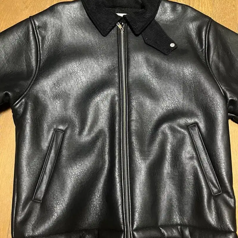 welise 무스탕 코트 헤비 PU 가죽 자켓 블랙