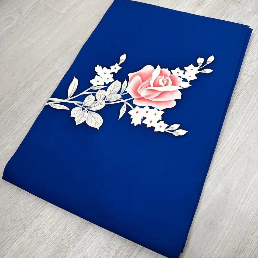 [ 전체 길이 356cm ] 나고야 오비 파란 바탕 장미 무늬