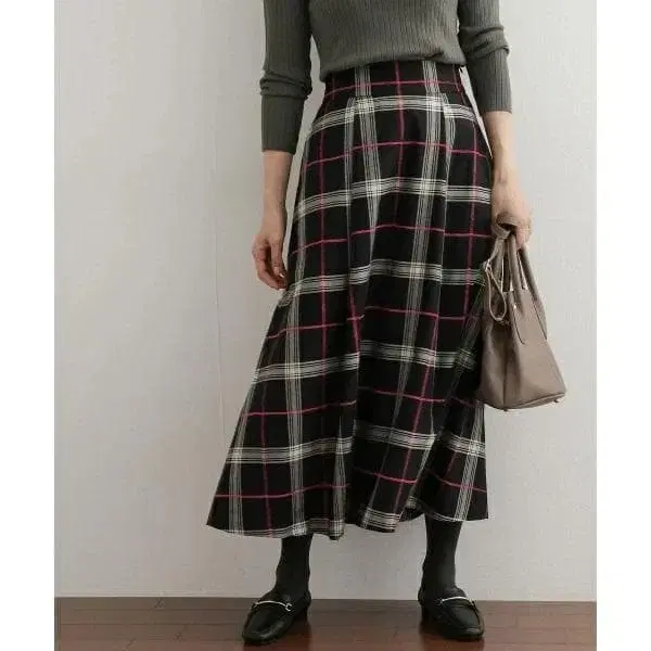 계절을 연출해 주는 빅 타탄 체크 패턴을 사용한 롱 스커트.