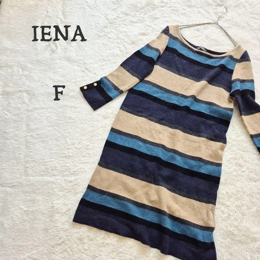 이에나 니트 원피스 스트라이프 무릎 기장 7부 소매 울 100 일본제 F