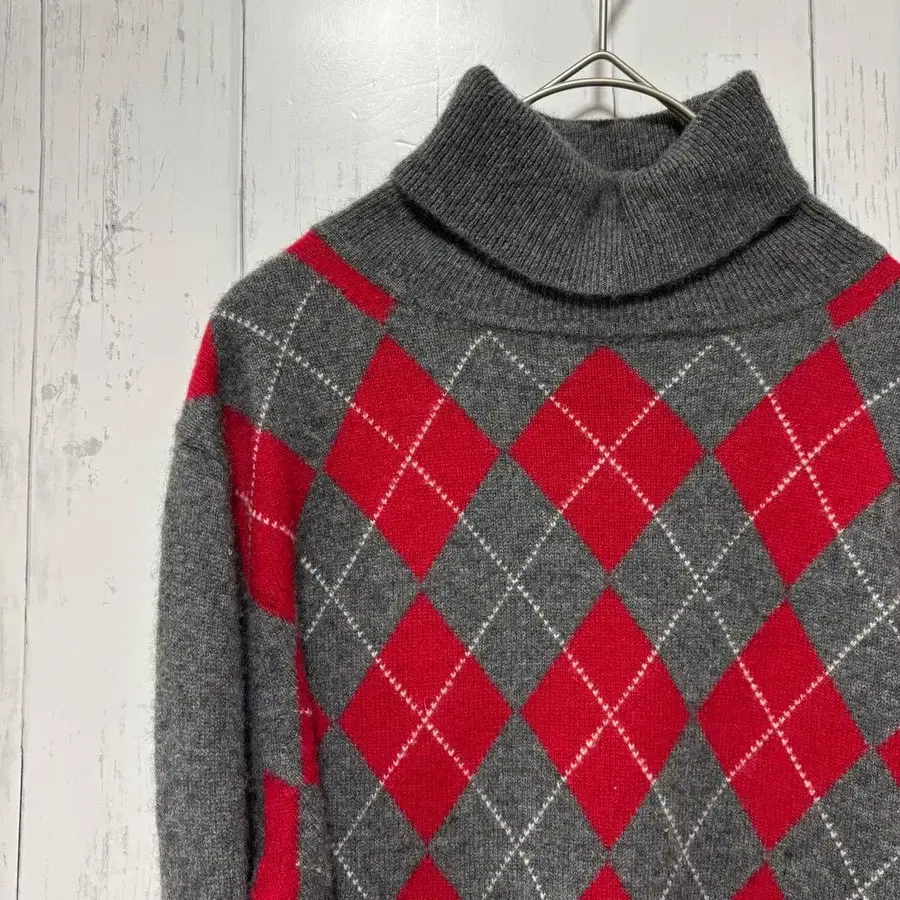 [최상의 촉감] 캐시미어 100% 아가일 무늬 터틀넥 니트 그레이 M