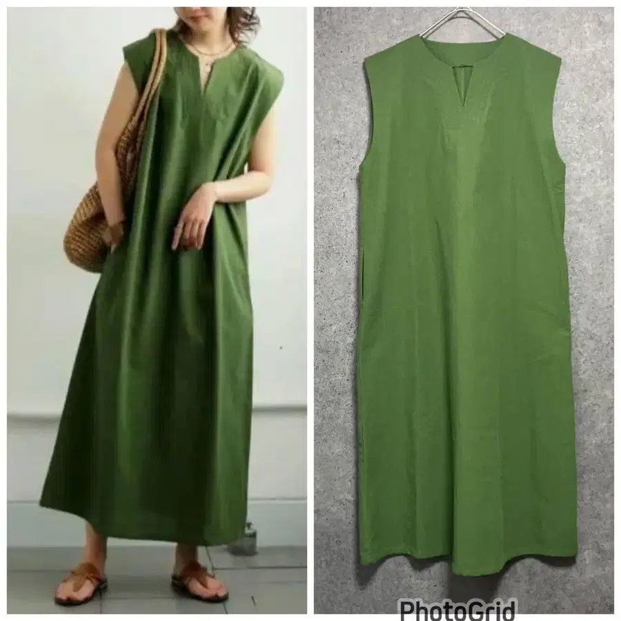 antiqua 린넨 원피스 그린 프리 사이즈