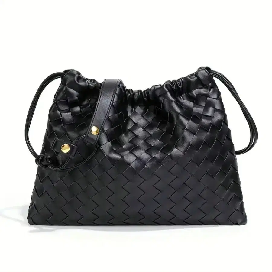 블랙 PU 가죽 인트레차트 뜨개질 숄더백 더스트 복조리