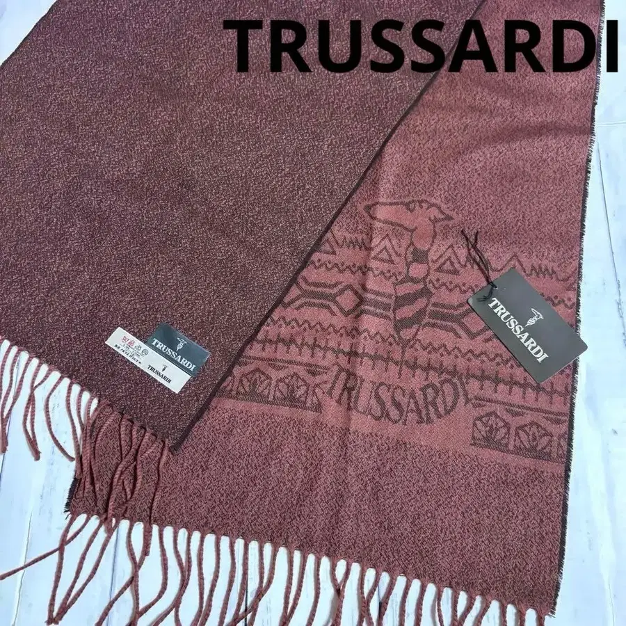 미사용 새상품 TRUSSARDI 트루사르디 캐시미어 혼방 머플러 브라운