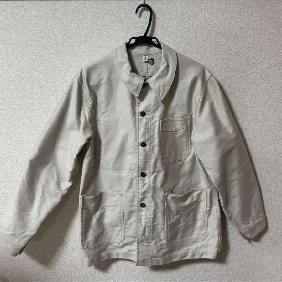 이 자켓은 프렌치 워크 자켓 스타일로, 심플하면서도 실용적인 디자인이 매력입니다. 앞면에는 2개의 포켓이 있으며, 버튼은 5개로 단단히 여닫을 수 있습니다. 또한, 상당히 탄탄한 원단감으로, 워시를 할수록 원단이 부드러워지며 멋이 나올 것이라고 생각합니다.